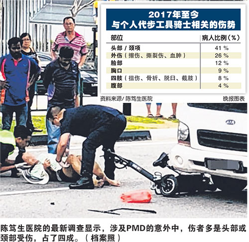 近三年来,到陈笃生医院就诊的个人代 步工具受伤事件猛增超过68%,大部分是头 部或颈部受伤。