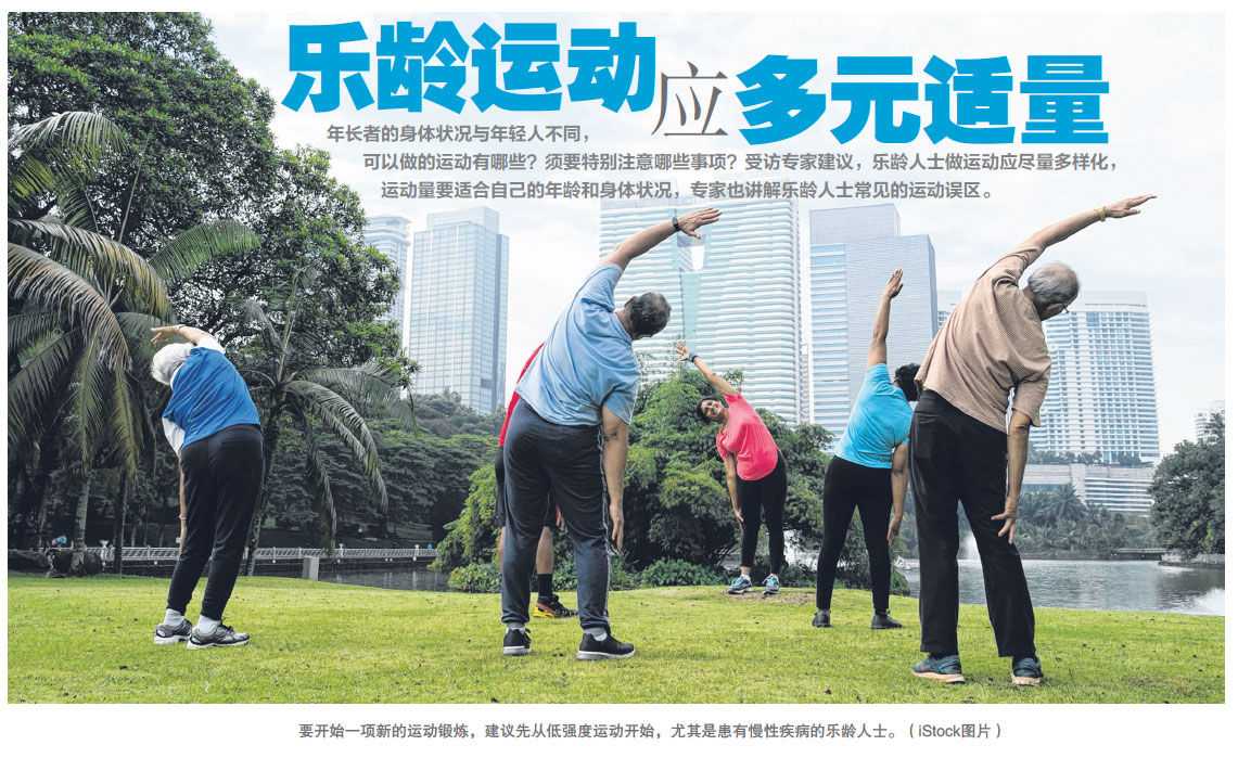 什么时候开始运动锻炼,绝 对没有年龄限制,但受访专家都 建议先从低强度运动开始,循序 渐进,慢慢提升运动量,尤其是 面对慢性疾病问题的乐龄人士。