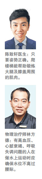 针对爬楼梯对膝盖不好的说 法,陈致轩医生认为,只要姿势 正确,其实这能帮助锻炼大腿及 膝盖周围的肌肉。例如:上楼梯 时,脚板要完全平放在梯级上, 不应该让脚 跟悬空。有 膝痛问题 的人应该找 出疼痛的原 因,爬楼梯 时,应根据 自己的能力 作出适度调 整。无论做 什么运动, 都要考虑到 自身的安全 问题。
