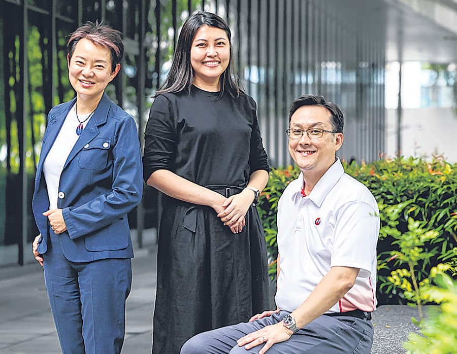 陈笃生医院工作场所安全与卫生主任杨宝琳(左起)、D-Team Engineering经理郑文惠与全国交通工友联合会会长曹国成,代表所属机构在职总职场安全论坛上领奖。(陈渊庄摄)