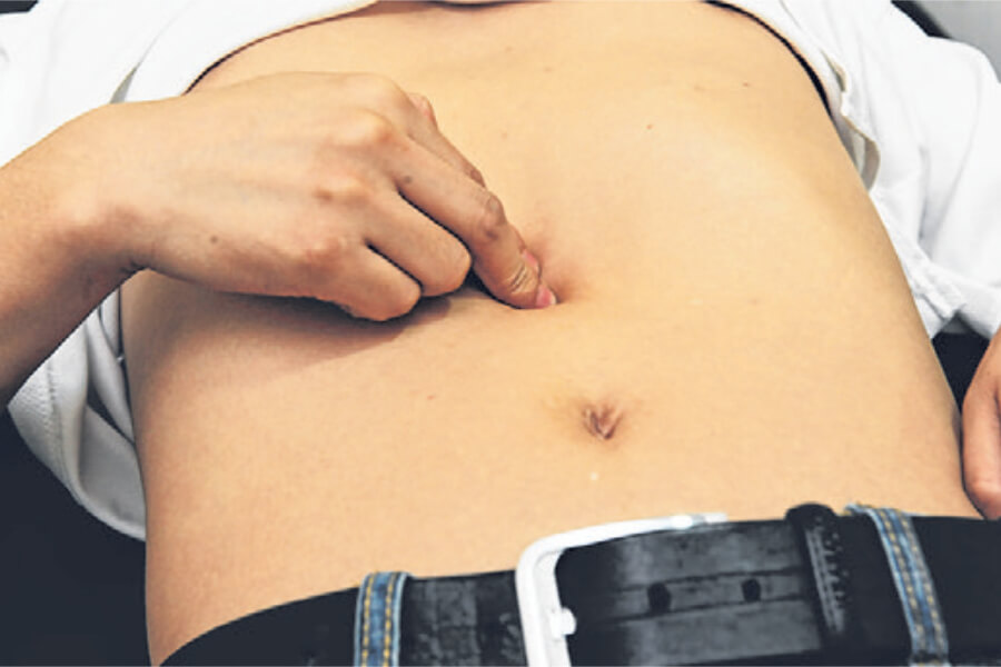 天枢穴位于中腹部,肚脐左右两侧三指宽处。 (档案照)