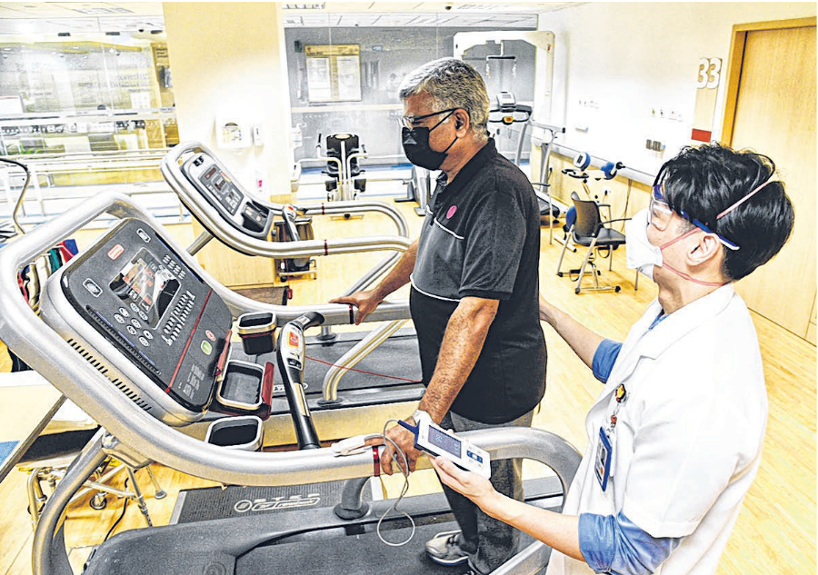 许多冠病患者康复后,需要接受物理治疗。去 年疫情暴发以来,陈笃生医院的物理治疗团队已经 协助超过400名冠病康复者进行锻炼。