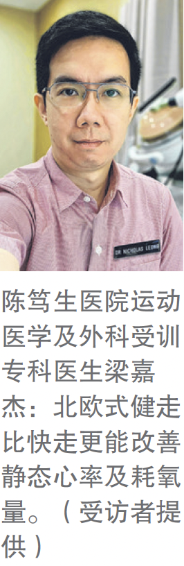 梁嘉杰医生说:“想试 试不一样的运 动,或想燃烧 比普通步行更多的热量,可以考虑这种健走方式。安全的做法是报名上课。”