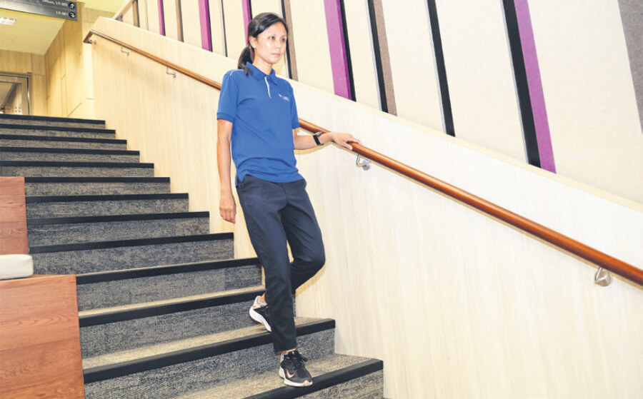 蔡依倩:体力加强了,可试着上下楼梯;安全第一,记得使用扶手。 (蔡家增摄)