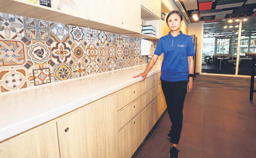 陈笃生医院社区保健团队的首席物理治疗师蔡依倩:在家步行的好处是较户外安全,必要的话可扶着柜台走。(蔡家增摄)