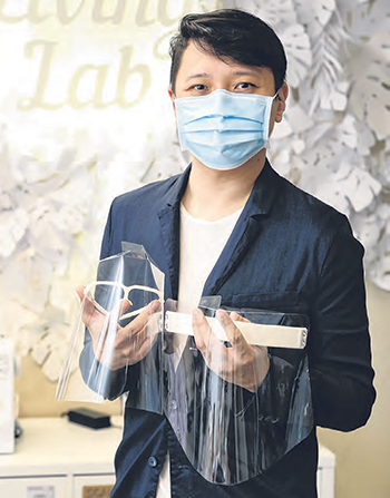 蔡佳翔最近参与改良抗疫用 的防护面罩的企划。传统眼罩会 让使用者不适,而且会起雾,精 益管理部因此着手为前线同事设 计更理想的面罩。蔡佳翔与同事 向医护人员了解需求以及工作环 境,再以2003年抗沙斯用的面 罩为原型改良。他们在两周内重 复设计了100多次,终于完成一 个较舒适,容易穿戴和脱下,安 全且制作费合理的面罩。面罩已 通过第一轮用户验收测试,目前 正大量生产,以便让全医院的前 线同事都能用到。