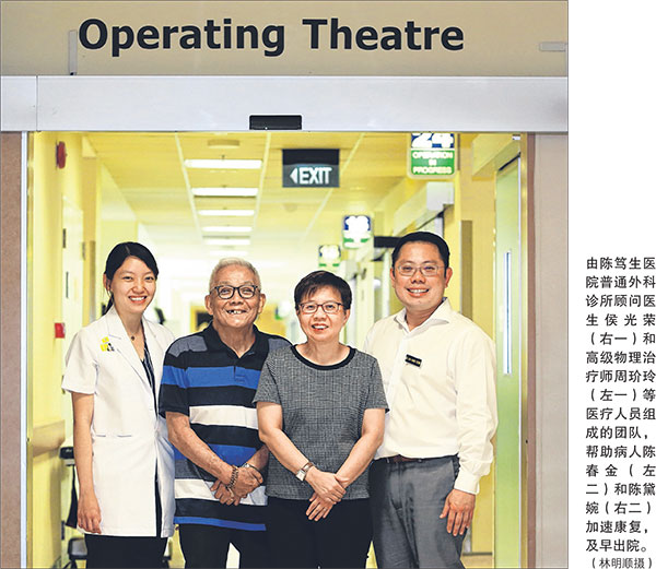 术后加速康复计划由外科医 生、麻醉师、护士、营养师和物 理治疗师等协力照料病人。陈笃 生医院先从结肠直肠手术病人着 手,前年也已把计划推广至肝脏 胰脏、切除膀胱、胃绕道和胃切 除手术等。由于计划效果显著, 医院今年底预计也将推广至耳鼻 喉、乳房和膝盖置换手术等,每 年惠及多1450名病人。