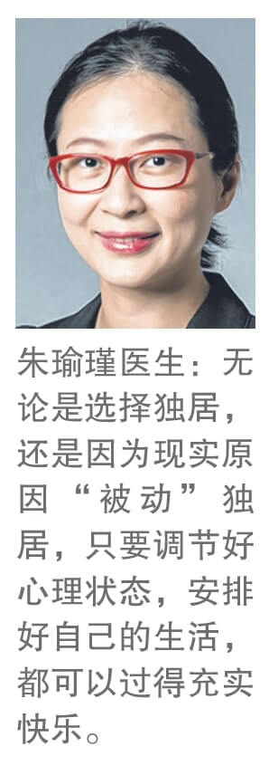 盛港社区医院助理顾问医生朱瑜瑾 说:“提到独 居,人们常常把它和孤独、 寂寞挂钩,然而事实并非如 此,独居不等于孤独。”