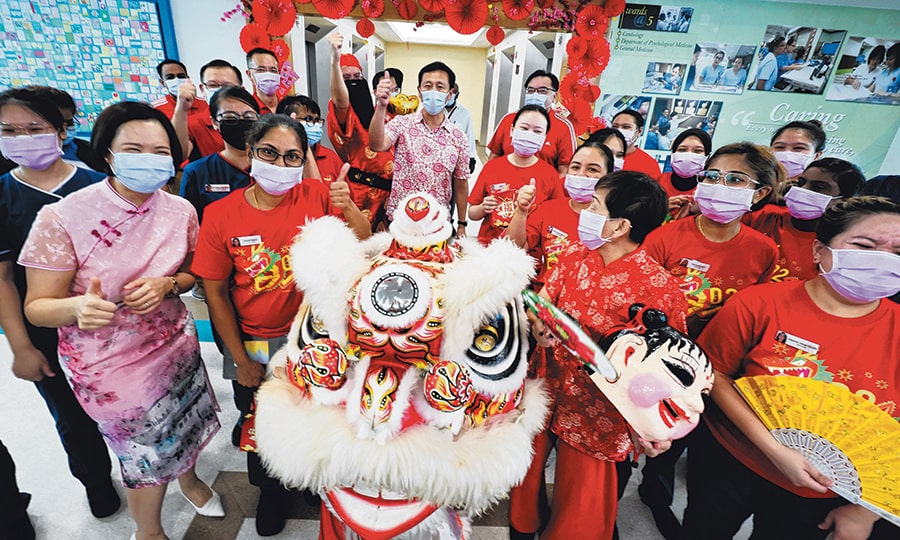 He dropped by Ward 5C – the smart ward of the hospital that tests technological innovations to improve inpatient care – to distribute Chinese New Year goodie bags containing oranges and red packets to patients and staff.