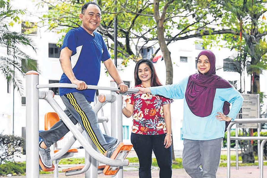 LEBIH AKTIF: Kini Encik Abdul Wahab (kiri) tekankan gaya hidup lebih sihat bukan sahaja ke atas dirinya, malah keluarganya termasuk anak sulungnya, Cik Nurul Ashikin (tengah) dan isterinya, Cik Siti Zuraidah Khamis (kanan). – Foto ihsan ABDUL WAHAB HASSAN