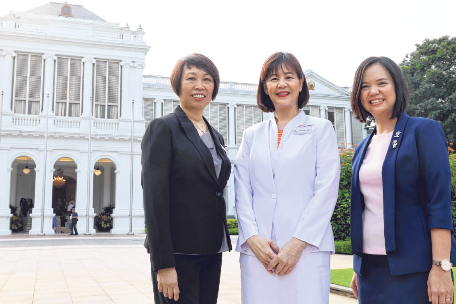总统护士奖自2000年以来,共有93名来自公共、私人和社区护理领域的护理人员荣获殊荣。今年的总统护士奖得主为全国肾脏基金会护理副总监陈翠琴(左起)、新加坡全国眼科中心护理总监罗慧萍博士和陈笃生医院首席护理总监许淑燕博士。(邝启聪摄)
